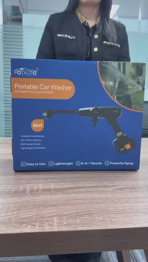 Potauto Cordless Portable Car Washer: 21V High Pressure Power Cleaner Kit with Dual 2.0Ah Batteries, 6-in-1 Nozzle and Foam Spray Bottle