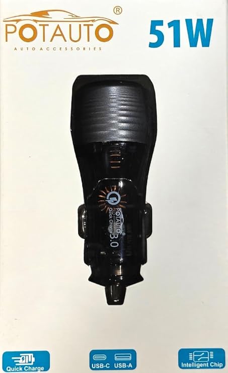 POTAUTO Fast Car Charger Adapter with Dual Output. Quick Charge Compatible for iPhone, All Smartphones, Tablets & More