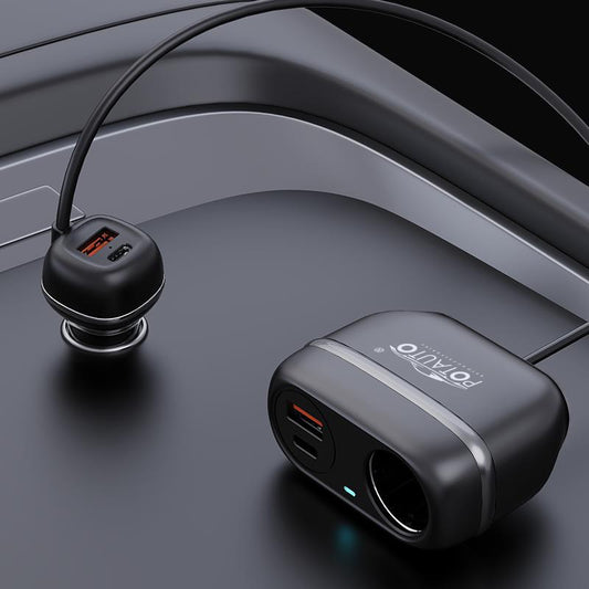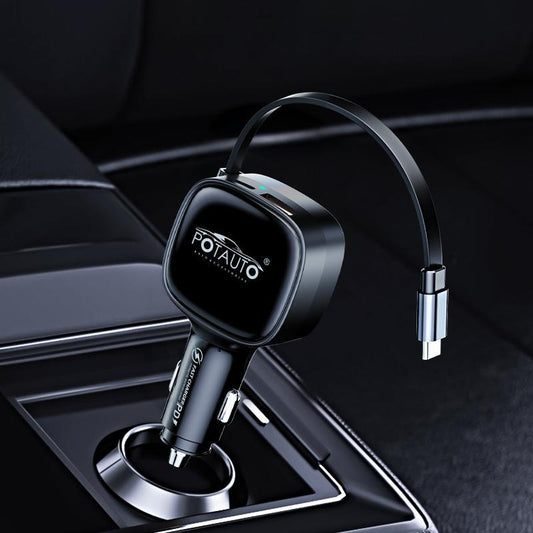 Potauto 84 W 3in1 Car charger with retractable Type C fast charging cable and 1 USB A & 1 Type C port
